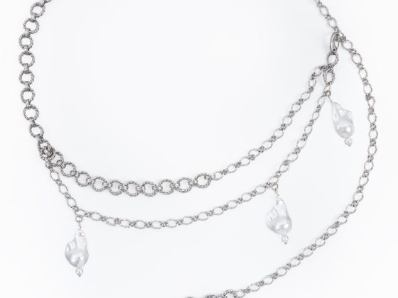 Silver dual pearl chain, ασημένια χειροποίητη ζώνη με κρεμαστά μαργαριτάρια