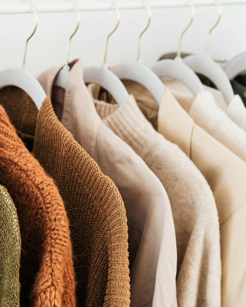 Η χρωματική ομαδοποίηση είναι ένα μυστικό styling hack. Τοποθέτησε τα ρούχα σου με βάση τις αποχρώσεις από σκούρα προς ανοιχτά (π.χ. μαύρα, μπλε, γκρι, μπεζ, λευκά).
