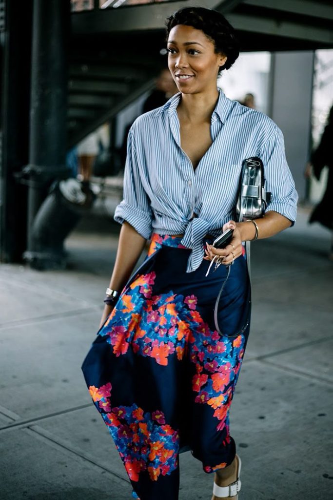 Δέσε το πουκάμισο σαν crop top και φόρεσέ το με καλοκαιρινές φούστες, είτε μονόχρωμες (π.χ. φούξια) είτε με πουά μοτίβα.