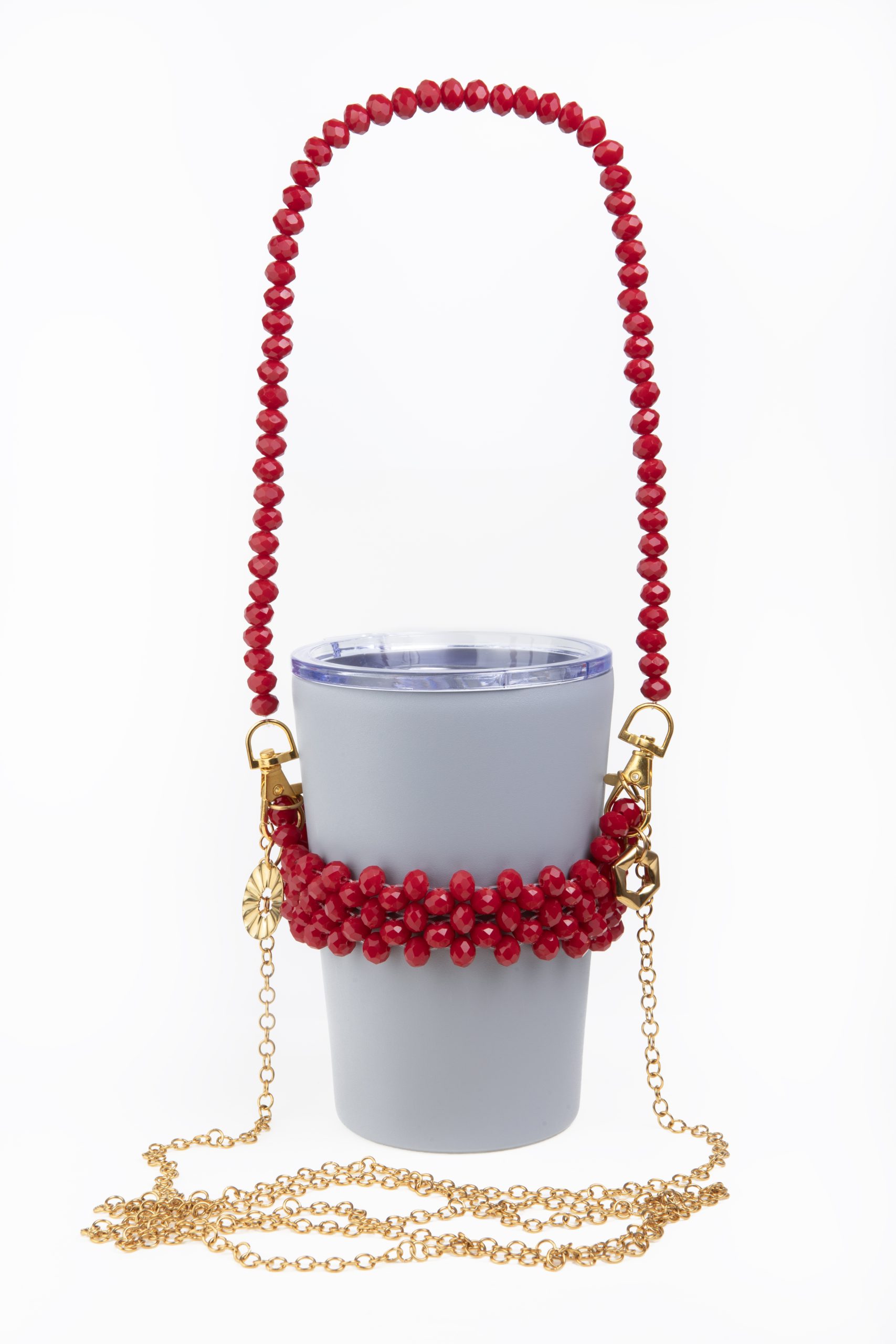 Το Red Geo Chain Cup Holder μετατρέπει το καθημερινό σου ρόφημα σε ένα κομψό στοιχείο του στιλ σου. Φτιαγμένο από κόκκινες χάντρες και στολισμένο με χρυσή αλυσίδα και γεωμετρικά μεταλλικά στοιχεία, λειτουργεί σαν μικρό, πρακτικό αξεσουάρ που όμως έχει τη λάμψη και τον χαρακτήρα ενός fashion piece.