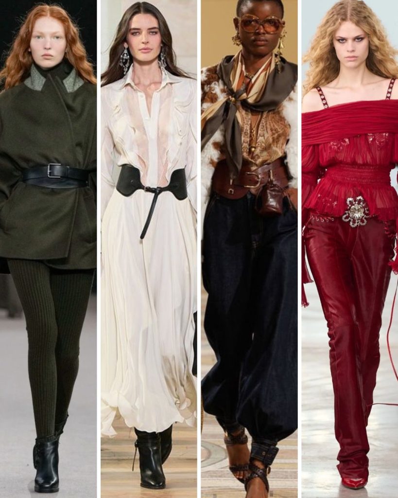 Από φαρδιές δερμάτινες που θυμίζουν corset μέχρι μεταλλικές ή υφασμάτινες που γίνονται το απόλυτο κέντρο βάρους σε μια εμφάνιση, η τάση είναι ξεκάθαρη: φέτος η ζώνη δεν είναι συμπλήρωμα…είναι πρωταγωνίστρια.
